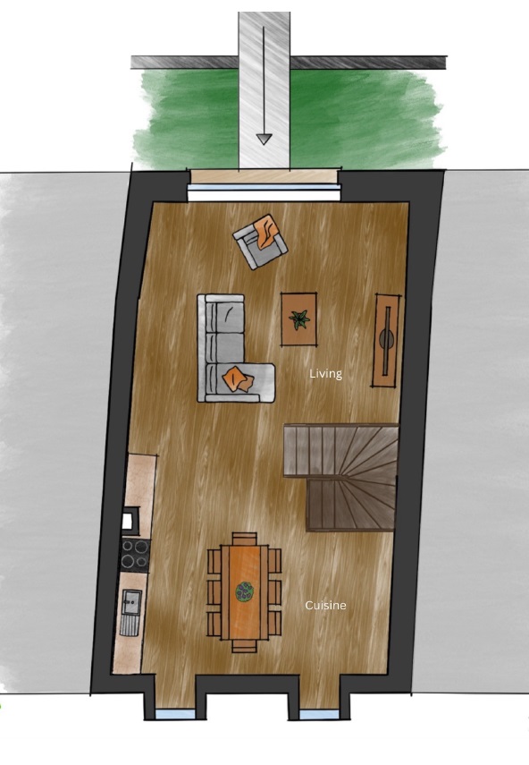 – Cuisine ouverte sur séjour avec accès sur le jardin